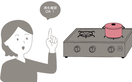 - 揺れが収まったら、ガス機器のスイッチを止め、ガス栓を閉めてください。