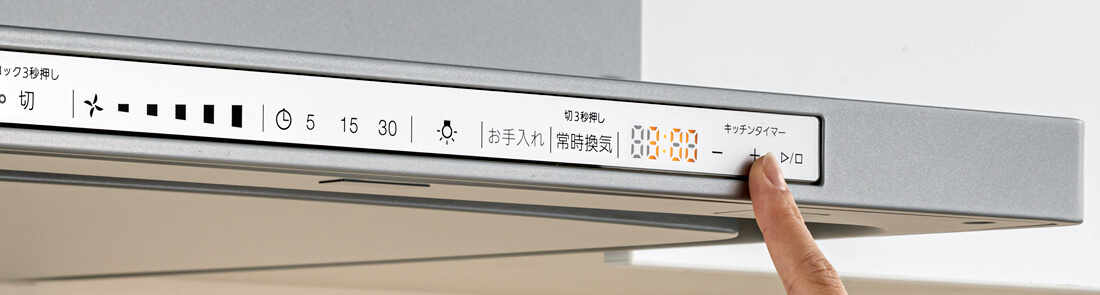 - 操作部が大きくて見やすい すっきりデザインの スリムなレンジフード